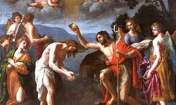 1. El bautismo de Jesús. Veía a Jesús en la plenitud de su edad, honrado por el eterno Padre , que le proclama su Hijo, y como tal lo presenta diciendo: "Este es mi Hijo, en quien me complazco". Y me parecía que añadía: "No lo equivoquéis por otro"
